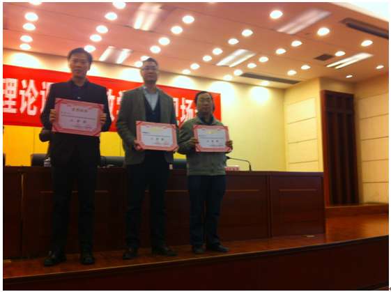 两组比赛分别决出一等奖2名、二等奖3名、三等奖5名、优秀奖10名。比赛分设教学设计和现场讲授两个环节。教学设计依据提供材料,融入自行决定所讲课程的相关章节,现场进行教学内容设计和多媒体课件制作;现场讲授由参赛教师提前60分钟现场抽签决定所讲课程的授课章节,自选其中内容,讲授时间不超过20分钟。教学设计和现场讲授分别占30%和70%计算综合成绩。
