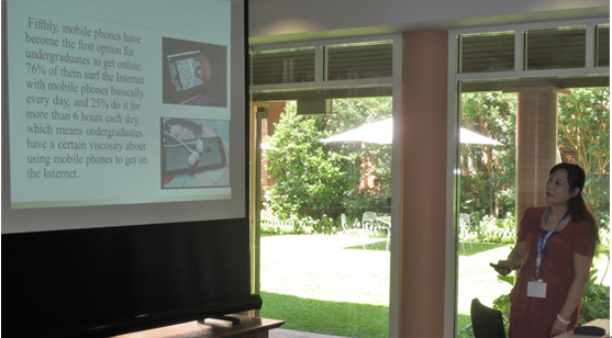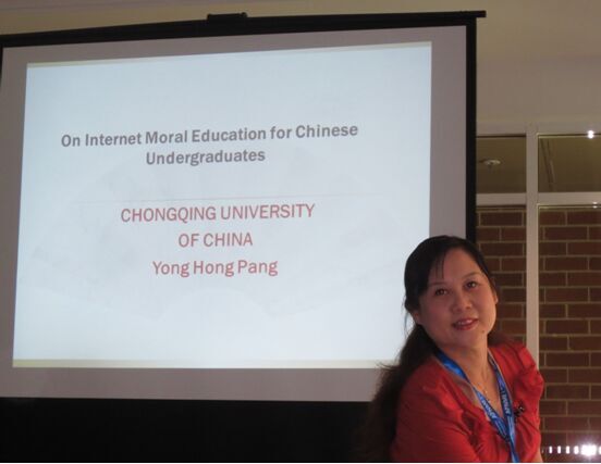 庞教授受邀参会外,北京师范大学、复旦大学、中山大学、南开大学等国内知名高校的有关专家也受邀参会。庞永红教授在会上作了“论中国大学生网络道德教育”(On internet Moral Education for Chinese Undergraduates)的全英文主题发言。这一主题发言引起了与会专家学者的广泛兴趣和热烈讨论。针对大家提出的一些问题,庞教授用英文做出了清晰的解答,得到与会专家学者的肯定好评。