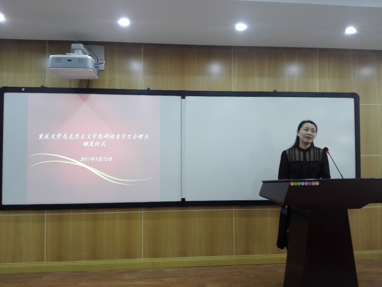 学生干部聘书颁发仪式,颁发仪式在人文逸夫楼412教室举行。院团委书记王玉琴出席仪式并讲话。学生会全体成员参加活动。王玉琴为学生会主席团以及各部门部长颁发聘书。各部长为所有新进干事颁发聘书。