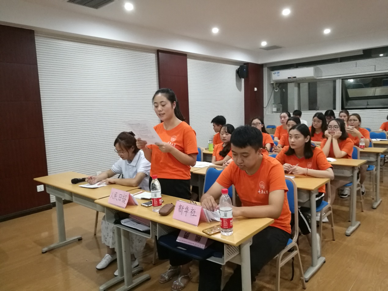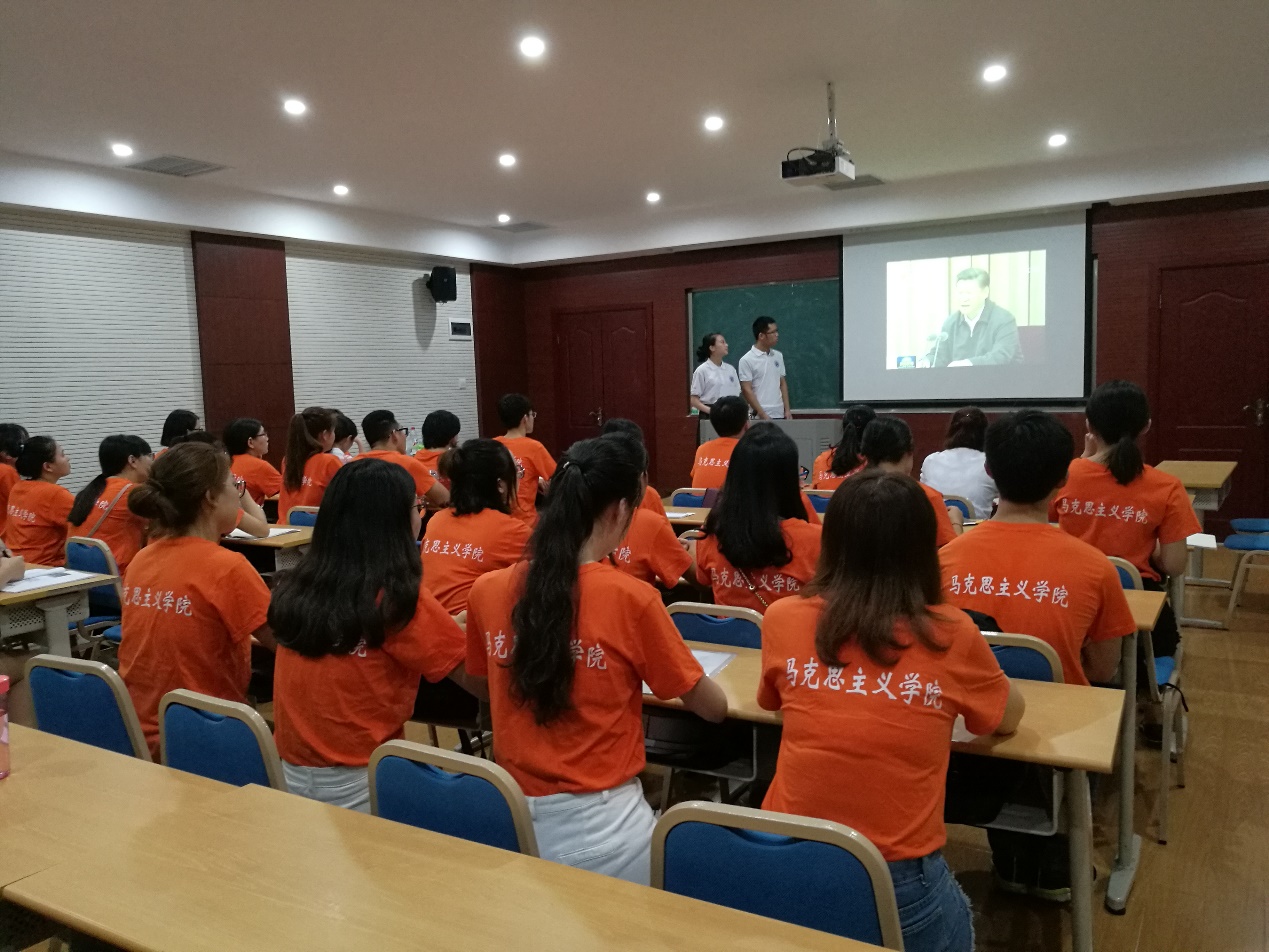 此次党团活动以模拟“新闻联播”的形式开展,创意新颖,效果显著,在场同学纷纷踊跃参与。本次活动还得到校研团委学生会的大力支持,校研团委学生会两位主要成员到场与同学们一起参与活动。与会同学首先观看了新闻联播关于习近平总书记“7•26”重要讲话系列报道视频,通过视频学习,同学们进一步领悟了习近平总书记重要讲话精神。