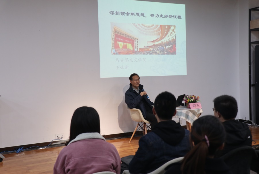 “红岩读书会”漂流队成员的身份参与了电子科大马院承办的“导师讲坛”。电子科大王让新教授作了题为“深刻领会新思想 奋力走好新征程”的报告,王让新教授从十九大报告的主要内容、三大贡献和文本框架展开进行了详细的讲解。王让新教授最后指出,作为学生一定要把十九大精神落到实处,奋力实现中国梦。中文无码