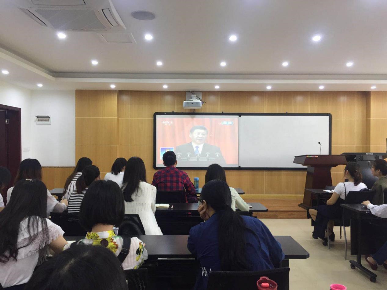 师生在412教室观看了纪念马克思主义诞辰200周年大会直播,学习习近平总书记在纪念大会上的重要讲话。