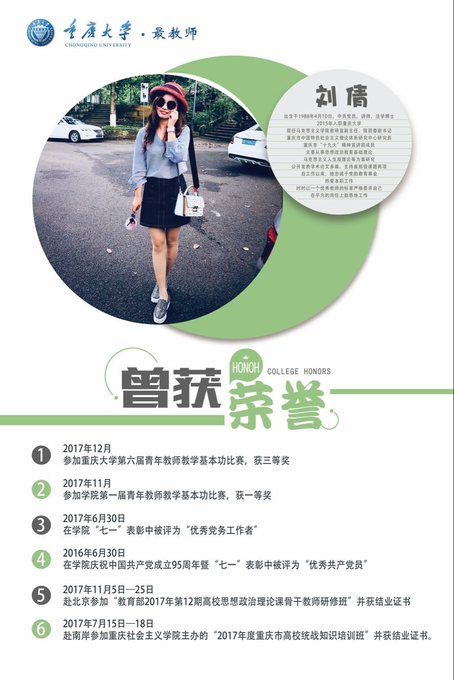 青年教师刘倩参选第六届“最受学生欢迎的老师”评选活动。此次活动经过报名推荐、线上投票、线下宣传、材料评审以及公开展示五个阶段。刘倩老师不负众望,在各个评选环节中名列前茅,进入到公开展示阶段。