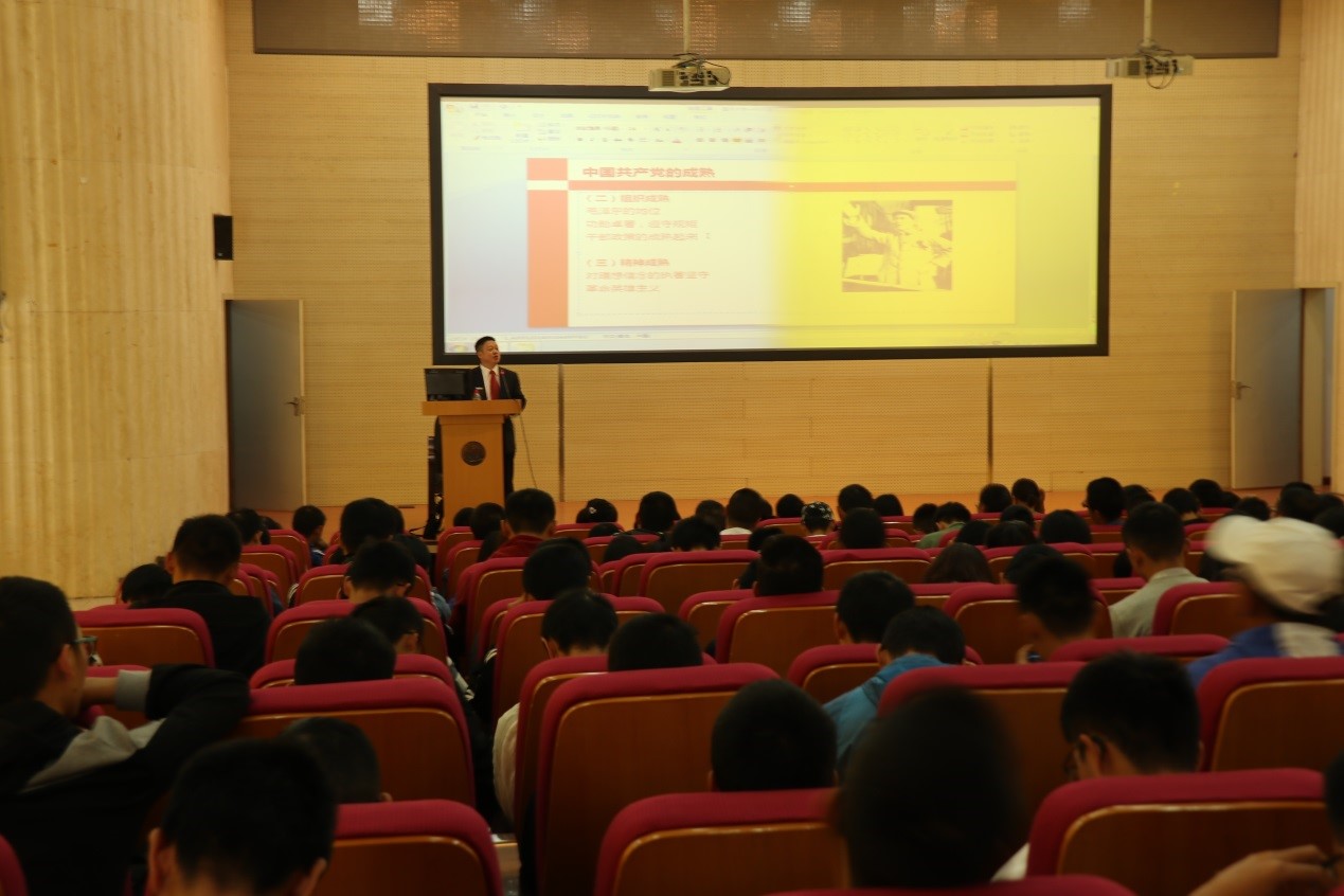 何虎生教授的教学示范课的主题是“中国共产党是抗日战争的中流砥柱“。何教授结合西安事变、国共合作等大量历史史料使同学们了解到中国共产党相忍为国、顾全大局,积极倡导建立和维护抗日民族统一战线的史实;用“一条河”“一条山”的恰喻让同学们了解到中国共产党如何坚持和发展敌后抗日游击战争,把敌后战场变成抗击日军的坚强堡垒;用经典的案例让同学们明白抗日根据地建设是抗战胜利的重要依托和实践;不但利用历史数据分析让同学们认识到不断加强党的自身建设的重要性,还紧密结合当代国情党情,深刻阐释当代大学生忠党爱国的意义。何虎生教授的示范课生动形象,充满激情,取得了良好的教学效果。