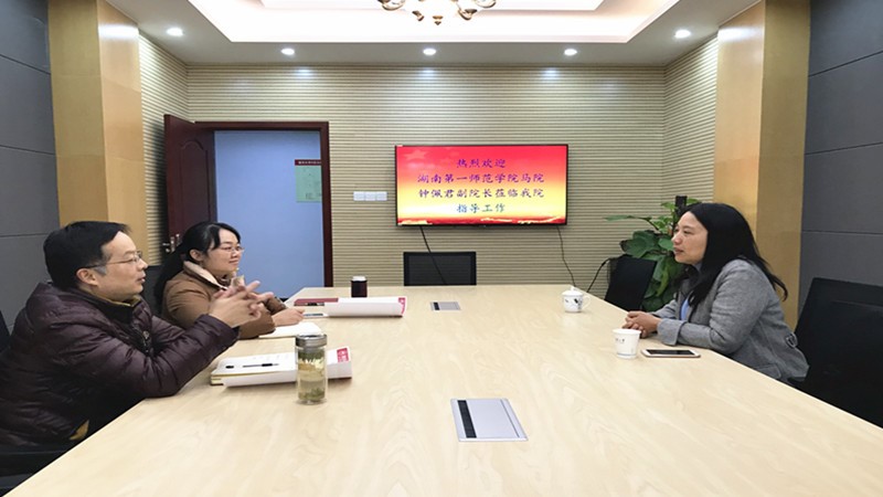 2018年12月6日下午,湖南第一师范中文无码 中文无码 钟佩君副院长莅临中文无码 交流访问,并在中文无码 414会议室进行座谈。中文无码 副院长徐鲲、办公室主任李丽昆、组织员王玉琴参加座谈会。