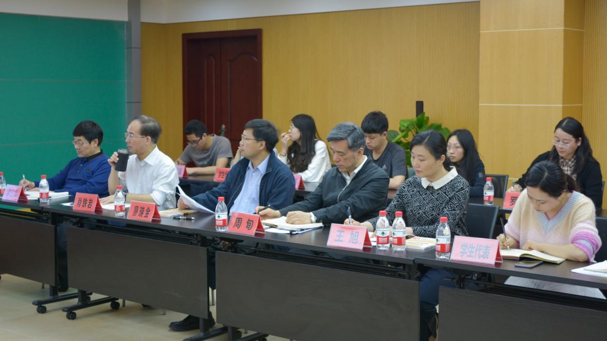 党委书记周旬,党委副书记王旭,副校长廖瑞金、教务处处长李良以及两位学生代表。