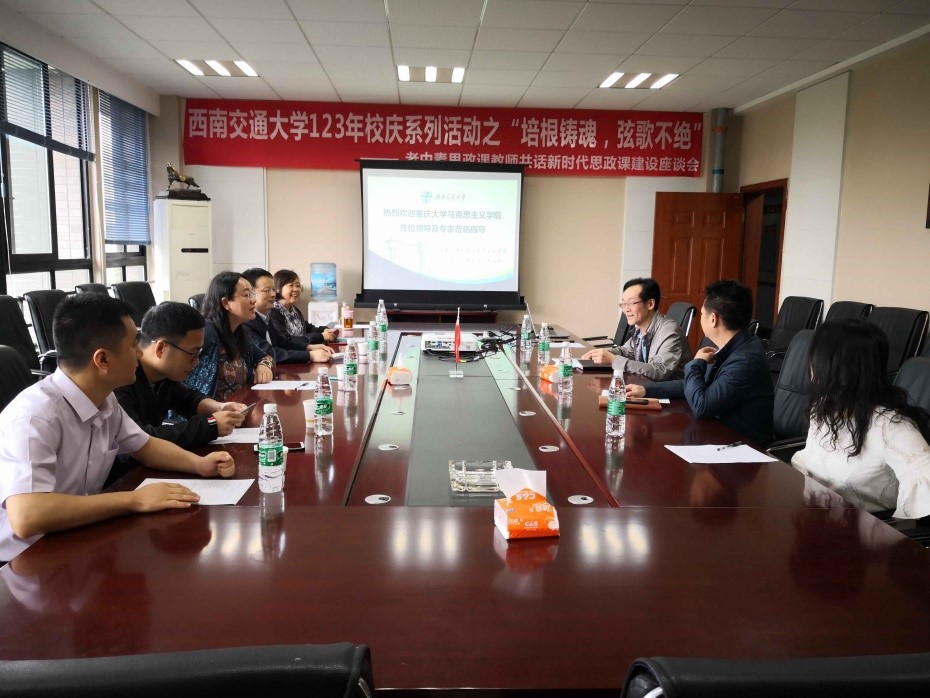 党委副书记兼纪委书记刘渊,马克思主义基本原理教研室党支部书记薛立波副教授,思想道德修养与法律基础教研室党支部书记陈青副教授,青年教师杨少垒副教授、付志刚副教授、张仁枫博士等参加交流座谈会。