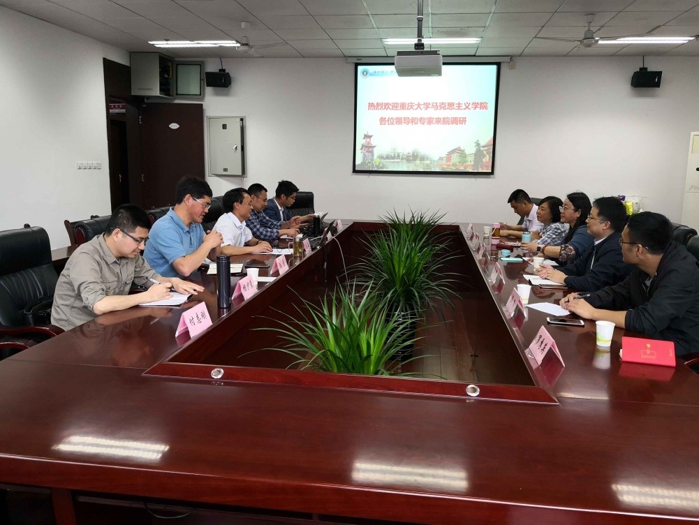 近年来的发展情况以及队伍建设问题,李学勇副院长介绍了思想政治理论课教学改革创新的最新情况、谢瑜副院长介绍了关于学科建设、学术团队建设、人才培养等方面的情况。双方就学科建设、思想政治理论课教学创新、人才培养、队伍建设以及党的建设等方面进行了深入交流。