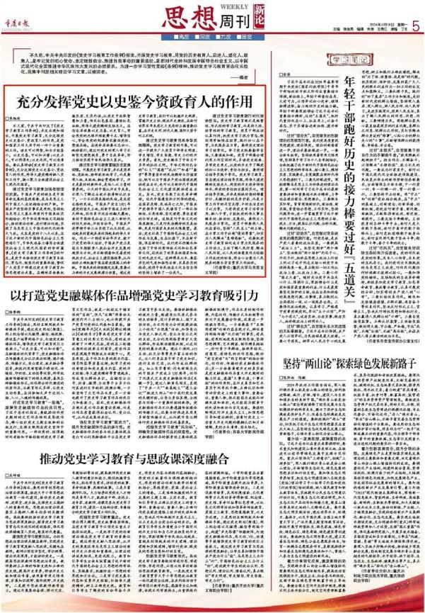 李旭阁博士在《重庆日报》思想周刊栏目发表《充分发挥党史以史鉴今资政育人的作用》一文。