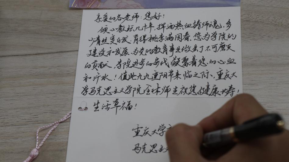 活动前期,爱心分队的成员进行了慰问物品的采购和分装。在每个礼物袋里,同学们都精心准备了一张爱心贺卡,表达对退休教师的敬意和祝福。