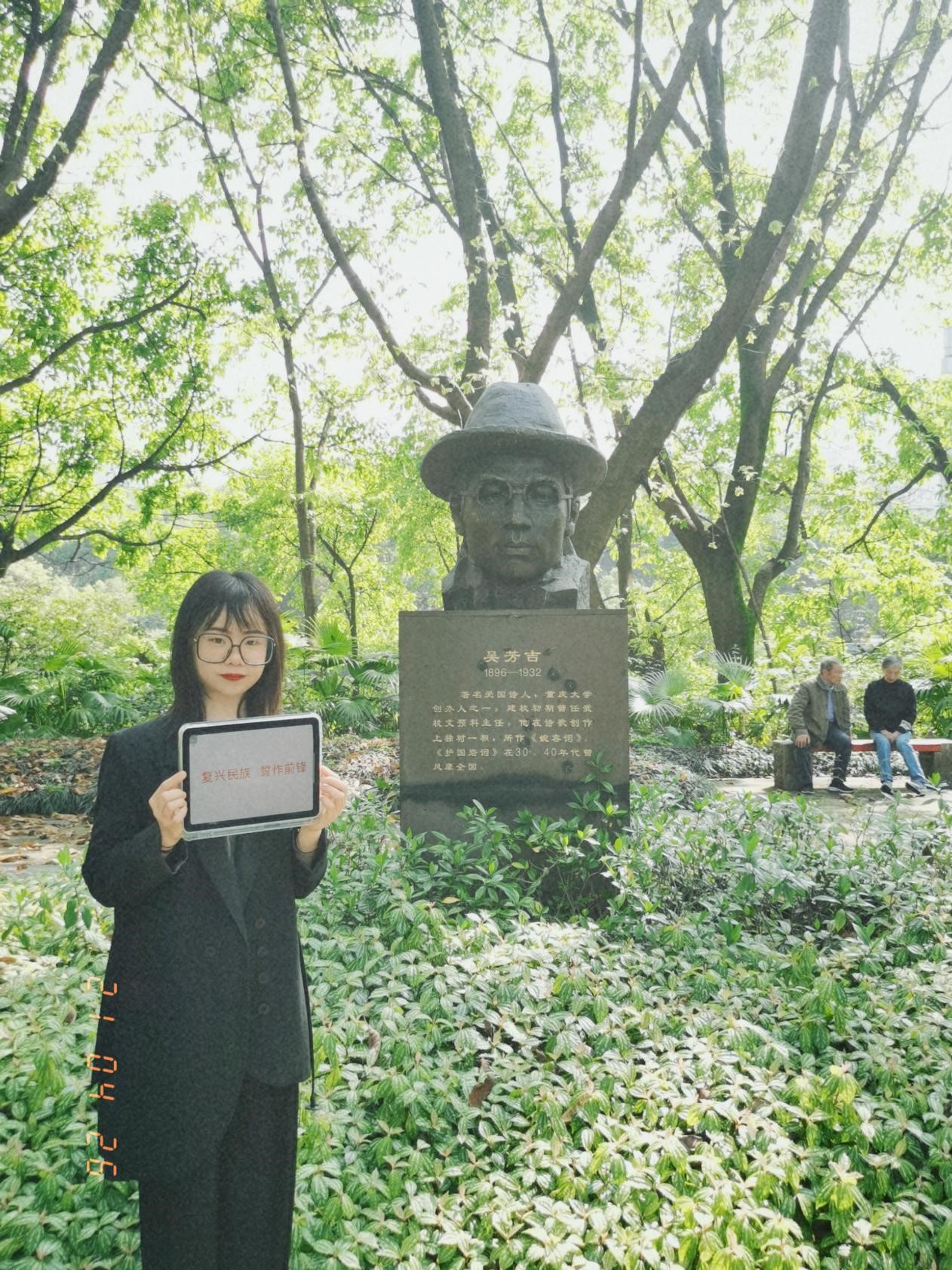 举办了“庆祝建党100周年系列活动之校园先贤雕像拍照打卡”活动。本次活动打卡时间从2021年4月17日持续至4月26日,吸引了百余人学生参与。
