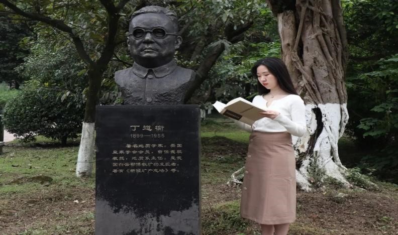 院长何鲁、地质系主任丁道衡、电机系主任冯简等先贤们雕塑所在处,分别进行了合影留念,并驻足了解了先贤背后的故事。