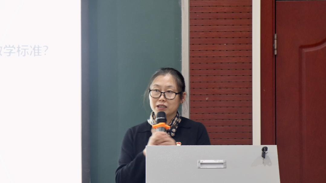 蒋荣围绕教学目标展开介绍。她指出理念教学目标应秉持以学生为中心,追求对学生思想、情感、行为产生持久而深远的影响,努力做到“情感塑造,能力提升,知识形成”三者的融会贯通。她提出实现教学目标应具备“高阶性、创新性、挑战度”为基础的教学标准,通过“选题、案例、内容、问题”四个部分把教学标准落到实处。她进一步将思政课的顶层设计技巧归纳为“政治的高度”“历史的厚度”“理论的深度”“接地气的温度”四条经验。此外,她以获奖大学生思政赛课视频为例,鼓励参赛同学尝试新颖活泼的教学形式,将课堂讲出激情、讲出风采。