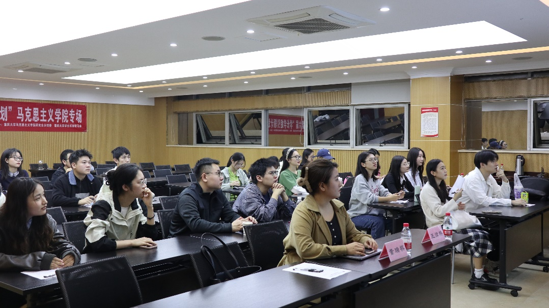 2023级博士研究生王津桥、2021级硕士研究生董瑞祺分享学术科研及社会实践经验,活动由2023级硕士研究生严雪主持,各年级研究生积极参与。
