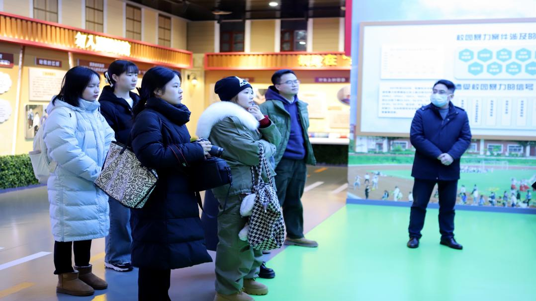 会前,实践团参观了潼南区青少年法治教育基地,在万玉娟及基地讲解员的带领和讲解下,实践团了解了潼南区青少年法制教育工作和心理健康教育工作的开展。基地通过图文式、案例式、模拟式、体验式等互动教育模式,运用大量的“声光电”和人工智能技术、沉浸式趣味互动体验,让青少年学习法律知识,增强法律意识,真正做到远离“校园贷”、远离毒品等行为。为大学生心理健康教育模式提供了借鉴,使团队更加立体地了解到潼南区的青少年心理健康教育工作。