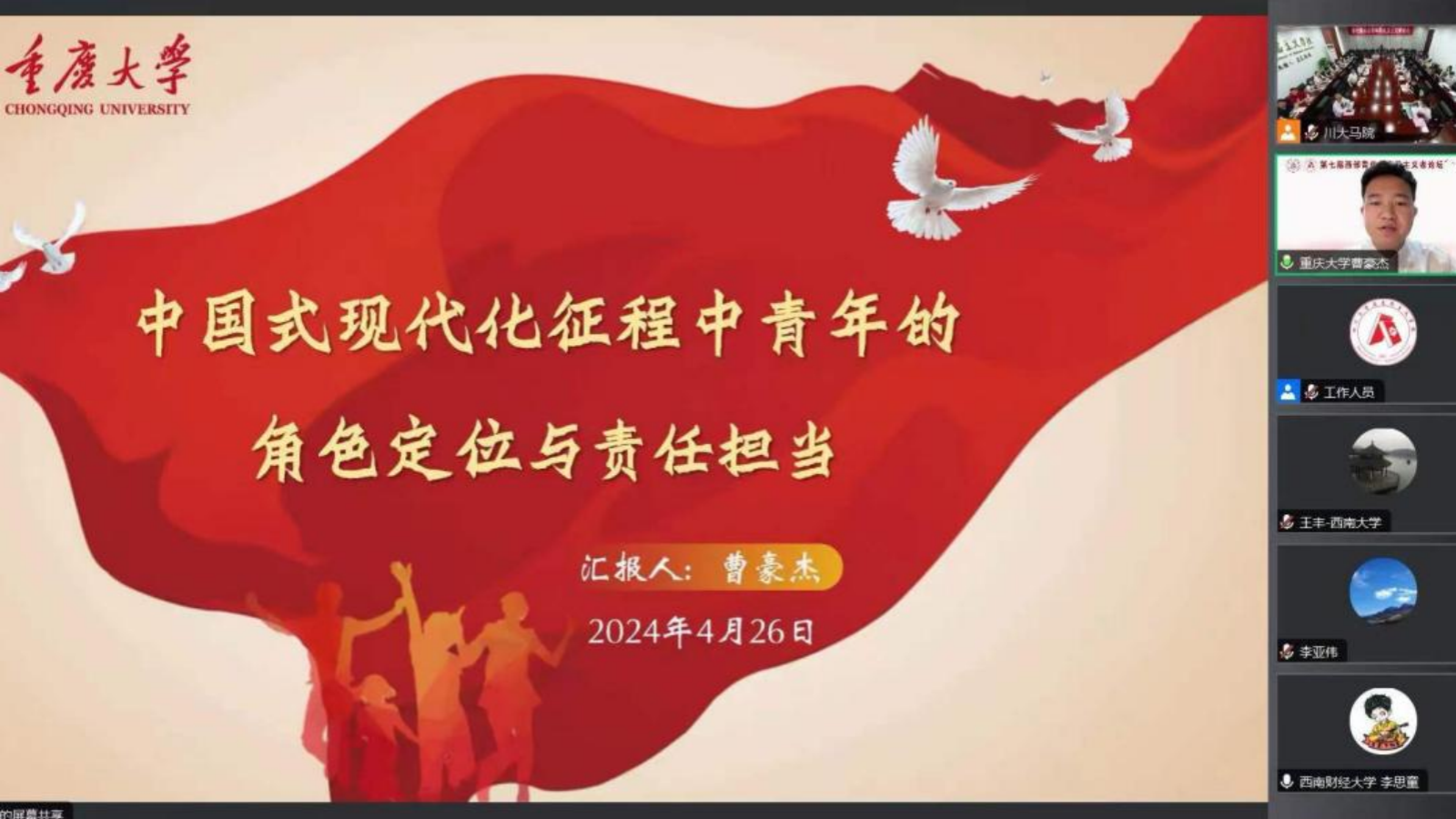 曹豪杰作了题为“中国式现代化征程中青年的角色定位与责任担当”的发言。他从中国式现代化征程中青年的角色定位、责任担当和实践路径探索三个视角阐述了青年应当如何在中国式现代化的进程中勇于担当、发挥力量。他指出,作为新时代的青年,要主动把握机遇,肩负责任使命,不负时代厚望,不负人民期盼,真切地将个人前途命运融入国家发展大局。