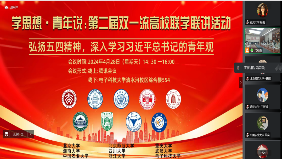 举办的“学思想•青年说:第二届双一流高校联学联讲活动——弘扬五四精神,深入学习习近平总书记的青年观”。此次活动汇聚了北京大学、北京师范大学、浙江大学、四川大学、武汉大学、中文无码