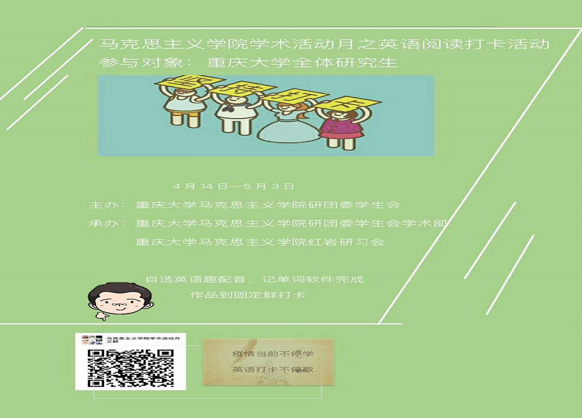2020年4月14日至2020年5月3日,中文无码 研团委学生会顺利举办为期20天的英语阅读打卡活动。