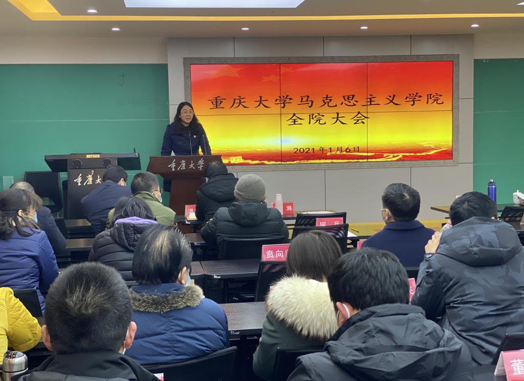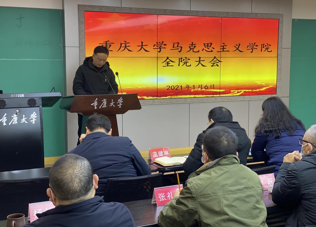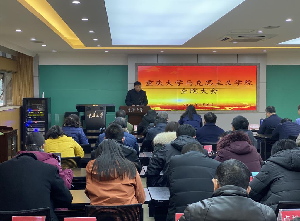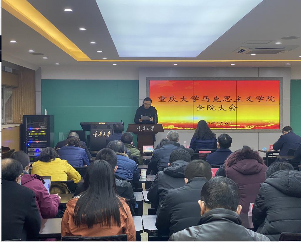 在2020年取得了积极发展,师资队伍不断壮大,学术影响力不断提升,研究生培养质量进一步提高、教学工作作为先进典型受到高度赞扬并在重庆市思想政治理论课改革经验总结复制推广大会进行经验介绍。张院长还通报了自己的教学与科研成果等内容,并感谢全体教职员工的支持,在未来的一年里,要率先垂范,以身作则,团结一心,凝心聚力,促进中文无码