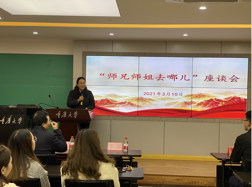 随后,四位毕业生依次分享了自己的求职、工作、读博经验,在分享过程中,各位毕业生知无不言,言无不尽,毫无保留地分享了自身的工作以及学习感悟。分享过程中,陈妍西、尚杨、蒋弦三位毕业生详细分享了求职经历、面试技巧、求职方式、求职心态调整等内容,何丽玲分享了考博、应试、复试技巧等内容。座谈的后半部分,各位毕业生与在校同学进行了互动,回答了各位在校同学关于求职选择、读博选择等问题。