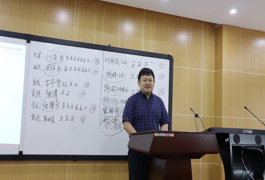 接下来,大会进行换届选举环节。高雅、李江博等二十位候选人分别上台进行竞选演讲。演讲完毕后,通过匿名投票的方式,最终选举出李江博、赵袁媛、于鑫雨、高雅、付玉、王娟六位同学成为新一届书记团、主席团成员;选拔出刘奕岑、周作玉、张馨月、杨婧、杨阳、裴瑞彤、杨清兆七位同学成为新一届部门成员;选举刘奕岑同学为新一届红岩研习会会长。