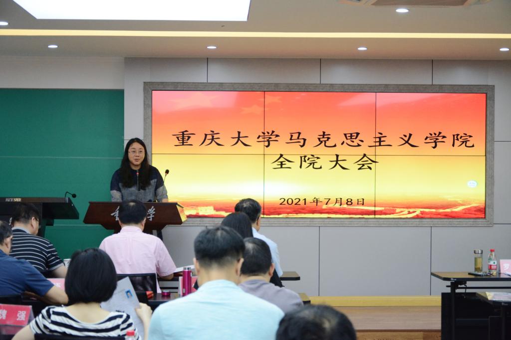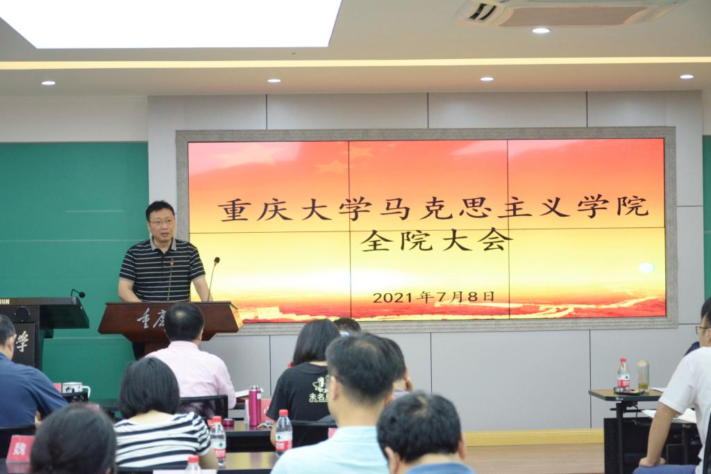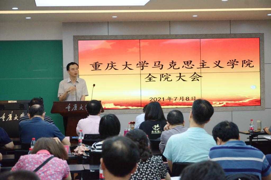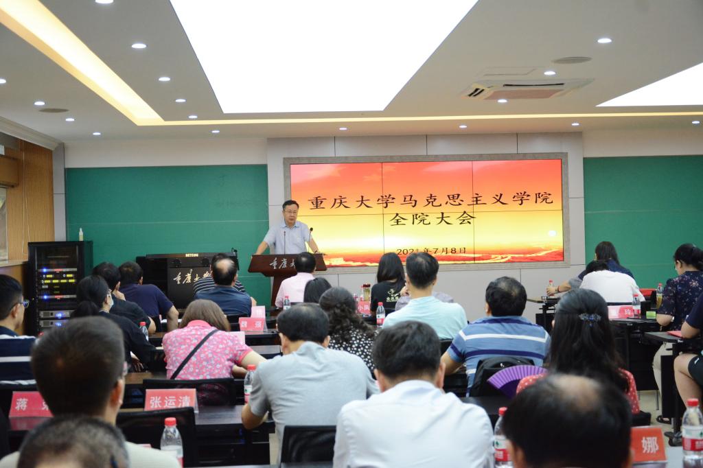 近期在博士点申报等方面的工作进展。随后,他要求各位老师做好期末相关工作,鼓励老师们利用假期时间进行论文、项目申报书的写作,积极准备下学期课程的备课工作,他要求各位老师将习近平总书记在庆祝中国共产党成立一百周年大会上的重要讲话精神融入到课堂中去。最后,他提醒各位老师注意假期安全,注意疫情常态化防护。