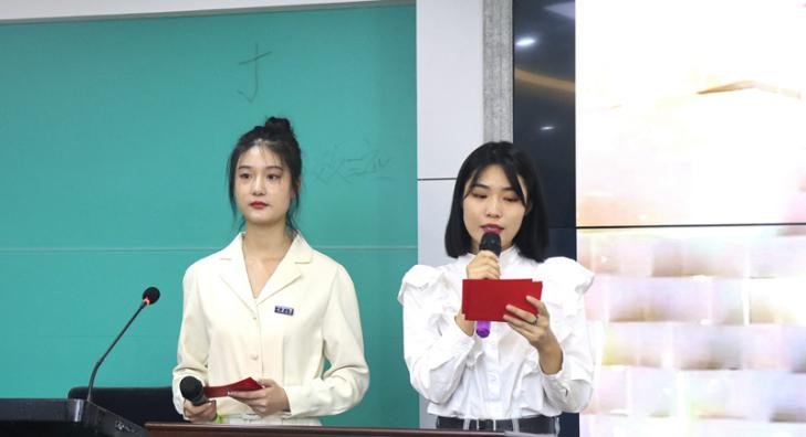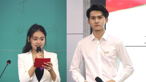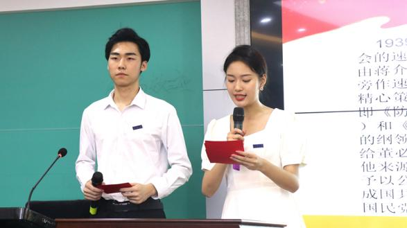 播音主持专业的郭畅阳、李基田、刘伟业、黄晓冉、谢雨欣、王倩、徐骏飞、潘烁丞八位同学组成了本次巡讲的宣讲团,依次为同学们讲述党史故事。