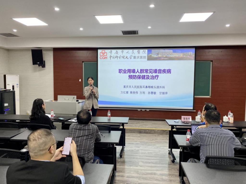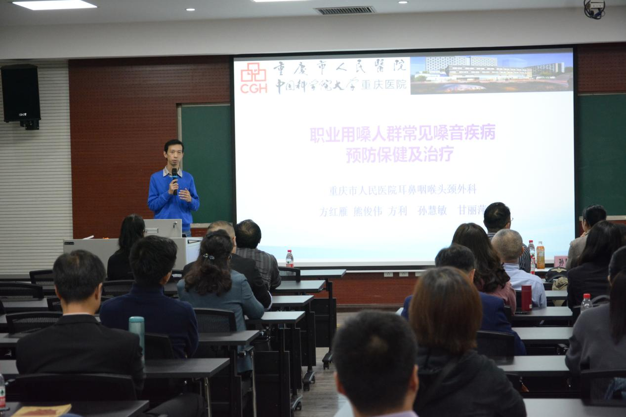 工会在406教室组织举行“职业用嗓人群常见嗓音疾病预防保健及治疗讲座”,讲座邀请重庆市人民医院耳鼻咽喉头颈外科副主任医师、副教授熊俊伟、重庆市人民医院护师、嗓音言语治疗师孙慧敏为中文无码