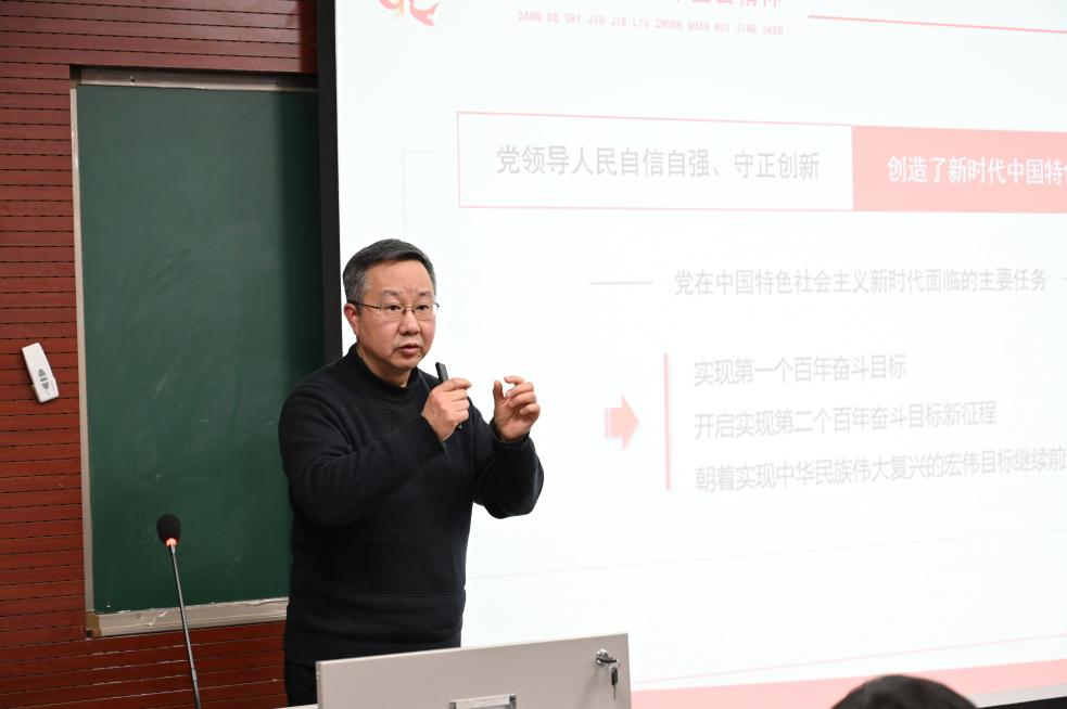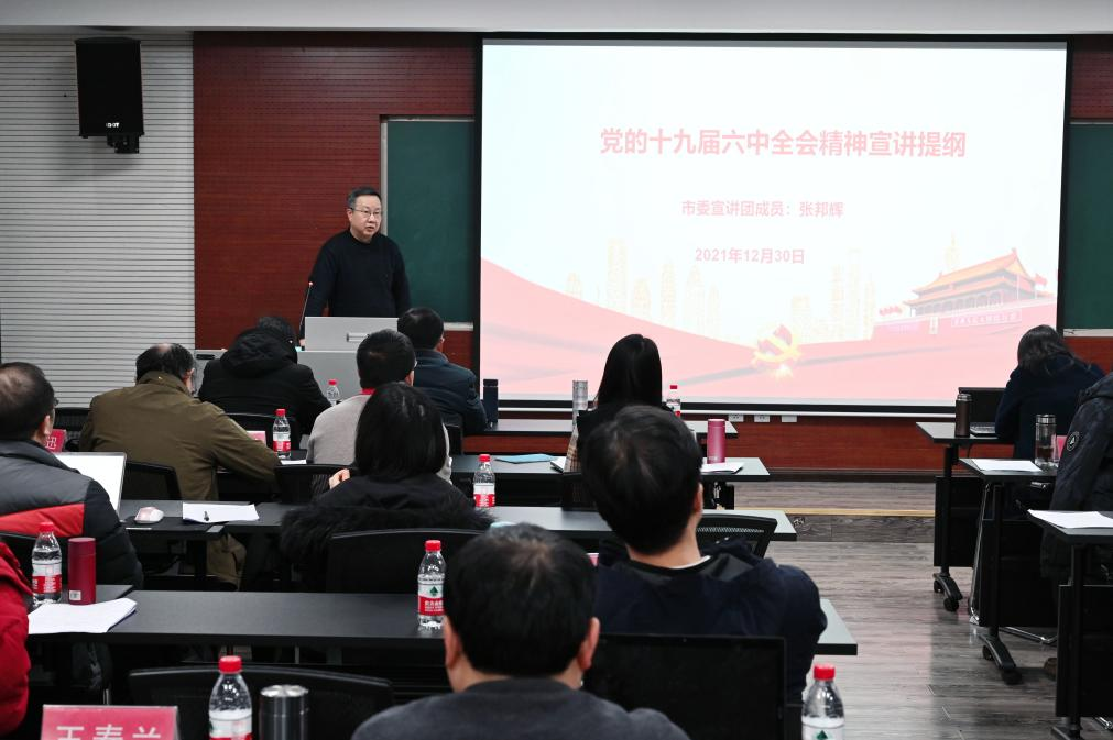张邦辉主要从深刻认识总结党的百年奋斗重大成就和历史经验的重大意义、深刻认识党的百年奋斗的初心使命和重大成就、深刻认识中国特色社会主义新时代的历史性成就和历史性变革、深刻认识党的百年奋斗的历史意义和历史经验、深刻认识以史为鉴和开创未来的重要要求、从党的百年奋斗历程中汲取智慧和力量等六个方面展开对党的十九届六中全会精神的解读。
