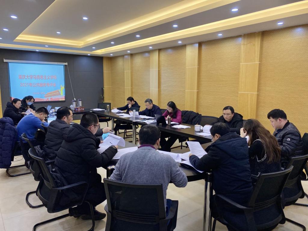 2022年1月4日下午,中文无码 在414会议室召开公共服务考评会,中文无码 领导班子、教研室主任、党支部书记、工会主席、党委组织员、院办主任、院团委书记等部门负责人参加会议。