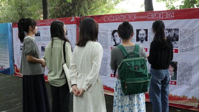 百年团史主题展览分为“致敬峥嵘岁月——百年团史”和“争做时代青年——先进模范”两大板块,以建团百年的历史为主线,集中展示了中国共产主义青年团自1919五四运动以来发生的重大历史事件以及其中涌现出的杰出代表。通过宣讲团史故事、举办团史展览等形式,向重大师生展现了中国共产主义青年团的百年风雨历程与奋斗精神。
