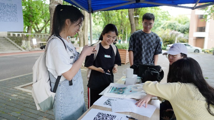 的上百名同学参加,在工作人员的引导和介绍下,通过扫描活动二维码参与答题,并根据答题分数赢得了丰富的奖品。在答题过程中,许多同学不禁感叹“在近代一百年的历程中,我国发生了如此翻天覆地的变化,生于和平年代的我更应该为实现中华民族伟大复兴贡献自己的一份力量。”