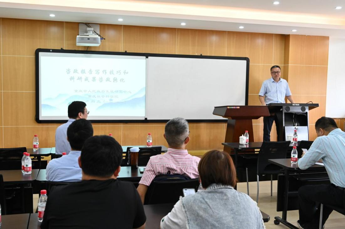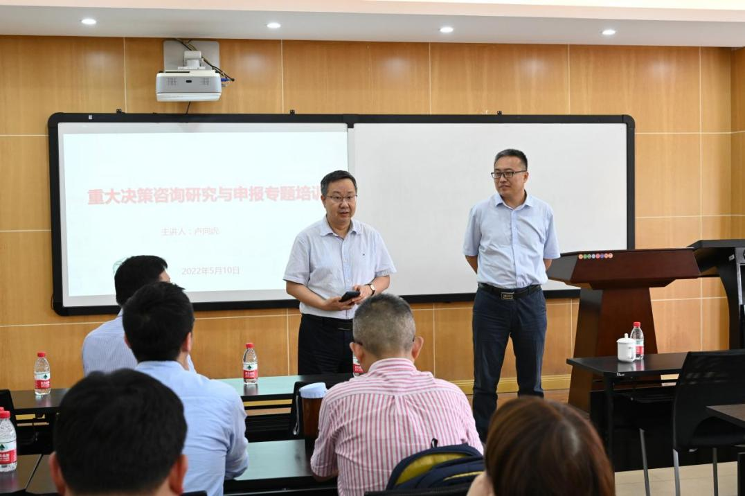 向卢向虎处长的到来表示感谢,随后卢向虎从相关政策回顾、《决策建议》刊物情况、如何写好咨政报告和科研成果咨政转化四个方面详细介绍了如何写好一篇合格的咨政报告。
