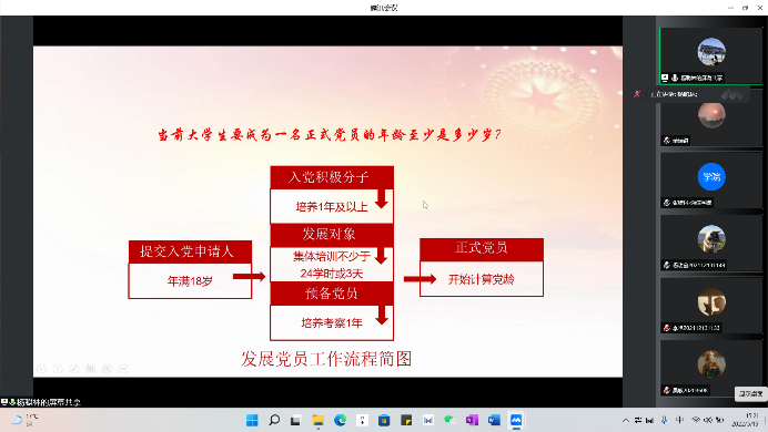 入党程序及其要求详解”的专题党课。党课通过腾讯会议以线上形式进行。