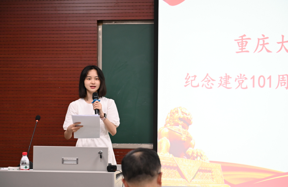 学生党员代表高雅发言,她讲到“作为一名党员,我还在随着党的步伐不断前进;作为一名马克思主义理论专业的研究生,还在不断捡拾‘真理的贝壳’,但我坚信事物的发展史螺旋式的上升和波浪式的前进,道路是曲折的,前途是光明的。”