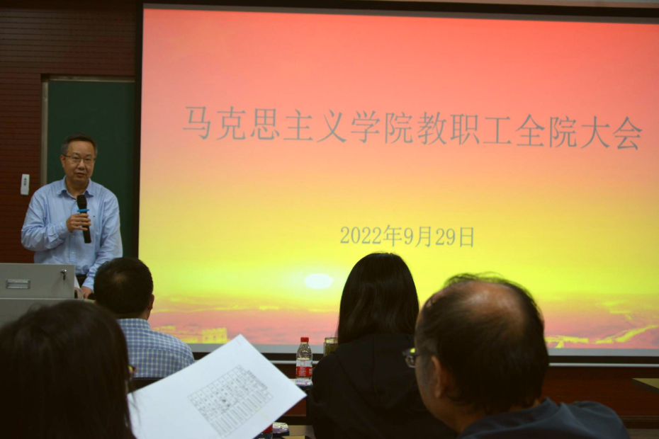 在406会议室召开2022年第七次全院教职工大会,全院教职工参加会议,会议由党委书记罗滌主持。