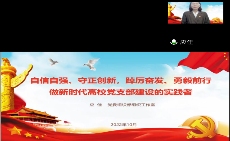 在支部工作培训中,应佳以“自信自强、守正创新,踔厉奋发、勇毅前行做新时代高校党支部建设的实践者”为题,从“中文无码