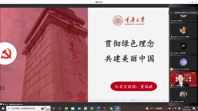 红岩宣讲团成员董瑞祺作了题为《贯彻绿色理念 共建美丽中国》的主题宣讲。