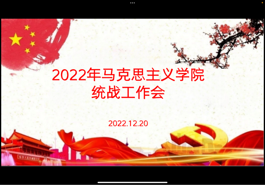 召开2022年统战工作会议,为奋力推进新时代高校思想政治工作凝心聚力。会议通过腾讯视频线上举行,马院班子成员、杨长福、庞永红、何文模、袁新荣、高飞、罗秀英等人参加会议,副院长吕进主持会议。