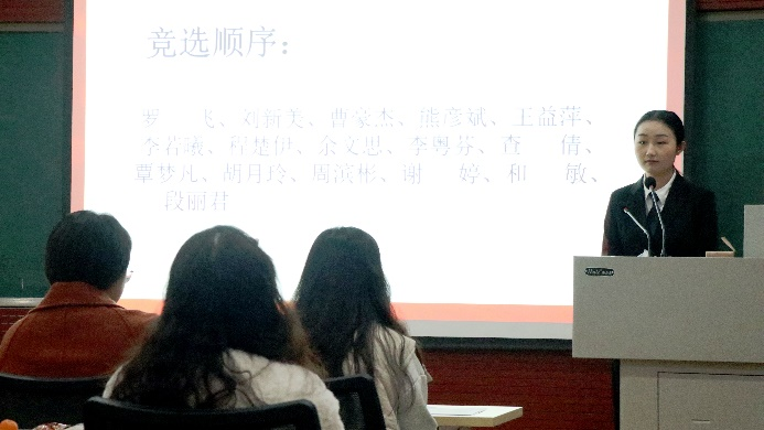 首先,研团委负责人何静简要介绍了竞选及纳新议程,会议分为各部门副部长竞选和部门干事纳新两个部分。在副部长竞选环节,罗飞、刘新美、曹豪杰等十六位各部门负责人候选人分别上台进行个人陈述,回顾了自己加入研团委以来的工作情况,并对未来的工作计划和部门的发展规划进行了展望。各部门候选人陈述结束后,各部门负责人针对其陈述内容进行提问,并对候选人的工作计划提出中肯的意见。