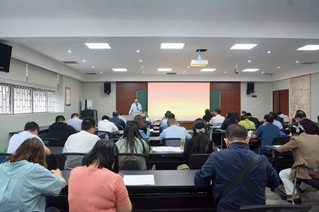 牵头的学术会议等组织情况,强调马院教师要提高政治素养、理论素养,在授课、对外宣讲过程中要严格遵守教学规则规范用语。他提醒大家关注群里面发的理论动态文章,提高教学科研能力,通报了近期人才引进相关情况、本科招生宣传、保密工作、教师暑期研修等相关事项,要求各位老师再接再厉,做好教学科研工作。