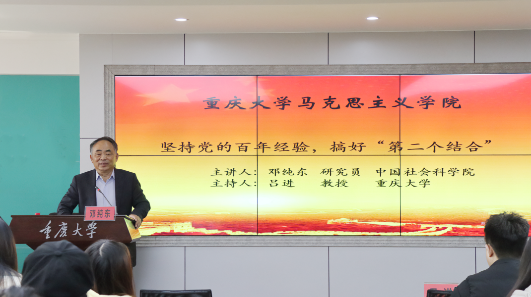 大学马克思主义高等研究院常务院长、研究员、博士生导师邓纯东作题为《坚持党的百年经验 搞好“第二个结合”》的专题讲座,马院师生70余人参加。