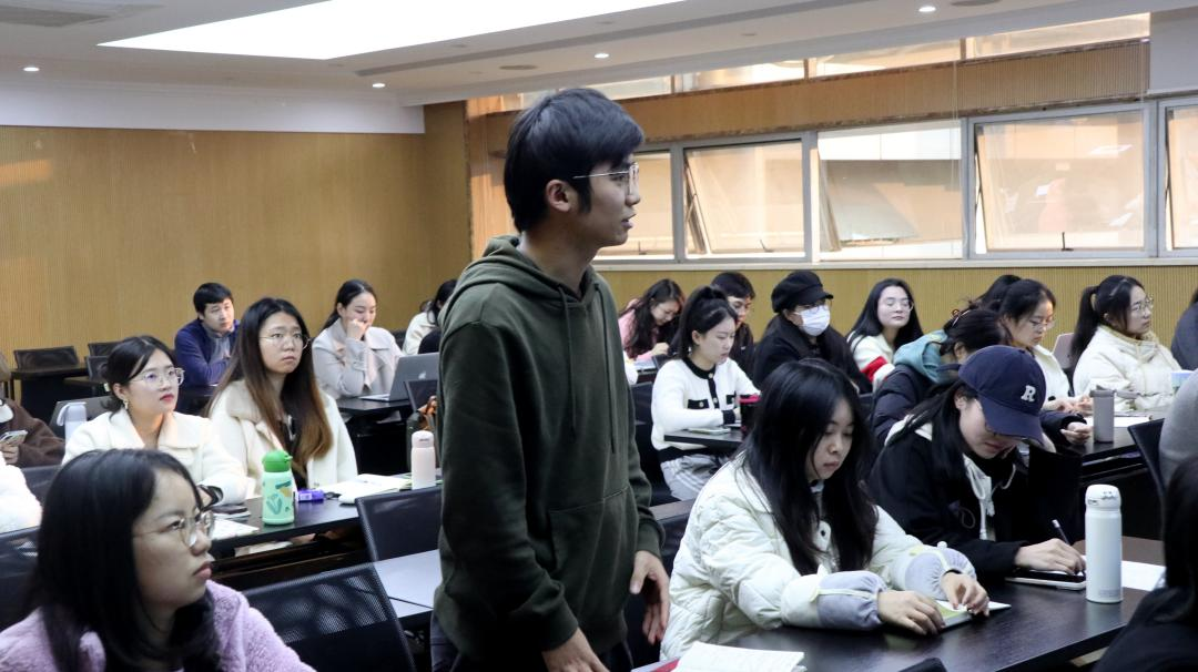 研究生积极提问,经济态势从“稳中求进”到现在中央经济工作会议提出的“先立后破”,传递出了什么信息。蒋永穆教授耐心回应了同学们所提出的问题,他指出先立后破体现了辩证法的智慧,中央一直强调宏观经济调控,重点强调非经济类型因素也要考虑经济因素的问题,要坚持经济建设为中心的中心工作与高质量发展的首要任务。