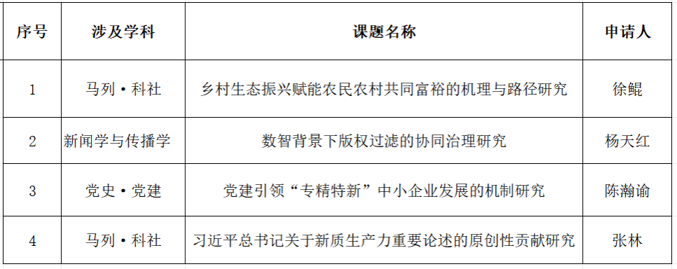 2024年10月15日,全国哲学社会科学工作办公室正式发布了2024年度国家社会科学基金年度项目立项名单。中文无码 立项4项,其中徐鲲教授、杨天红副教授获2024年国家社会科学基金一般项目立项,陈瀚谕副教授、张林博士获2024年国家社会科学基金青年项目立项。