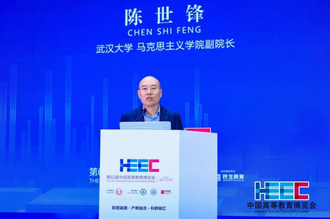陈世锋以“中华优秀传统文化对思政课的打开方式”为题作主题报告。他从历史、审美、精神、实践、场景五个层面介绍了武汉大学以中华优秀传统文化开展思政实践教学的模式探索。并阐述要把马克思主义基本原理同中国具体实际相结合、同中华优秀传统文化相结合,以中国特色社会主义取得的举世瞩目成就为内容支撑,以中华优秀传统文化、革命文化和社会主义先进文化为力量根基,推动中华优秀传统文化创造性转化、创新性发展的实践思路。