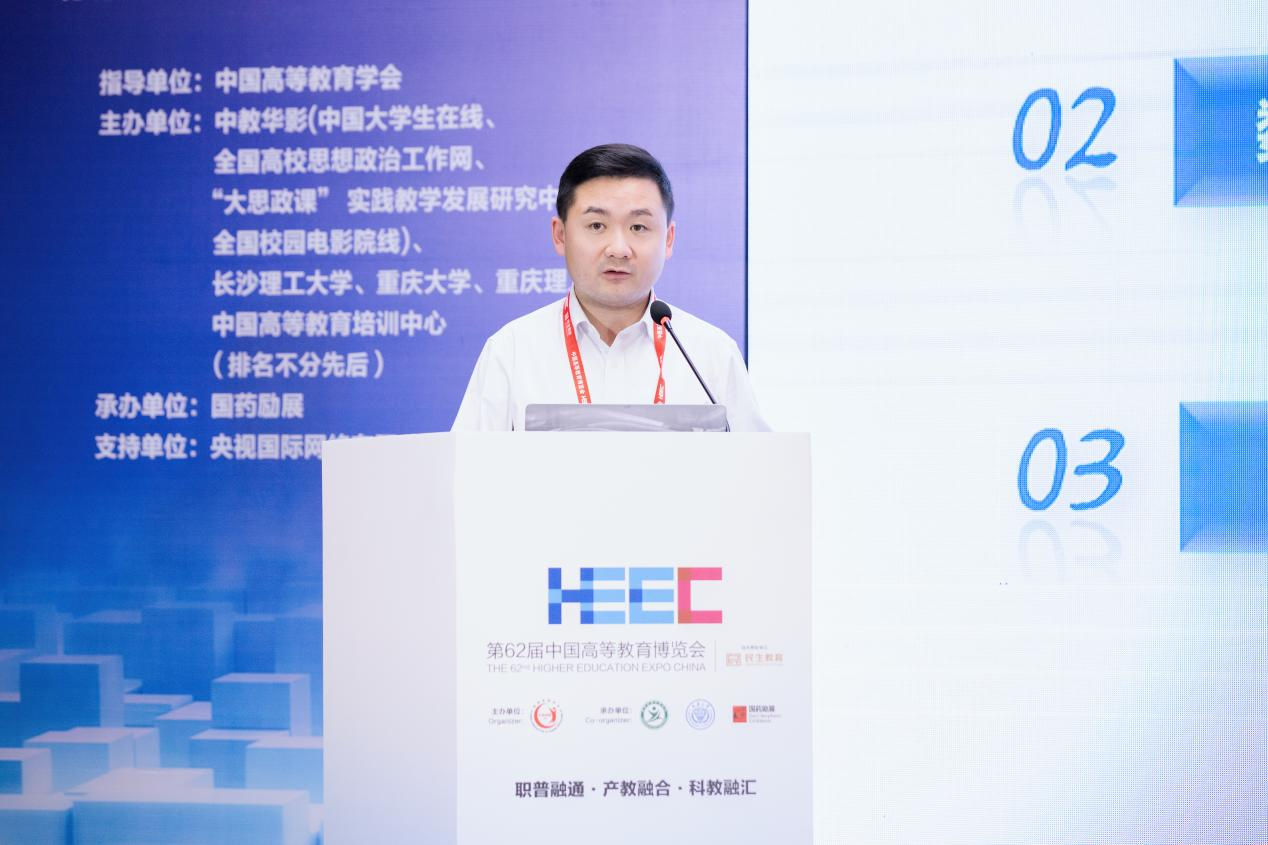 张洪涛以《“校媒无忧”——数字赋能助力“云上大思政课”建设》为题,从网络思政阵地建设、优化内容生产模式、创新传播形式和载体、强化数据赋能等方面介绍了中教华影通过数字技术赋能网络思政、构建“云上大思政课”大格局的实践经验,同时介绍了集资源管理、内容审校、信息发布、协同管理于一体的“校媒无忧”数字媒体服务平台开发规划。