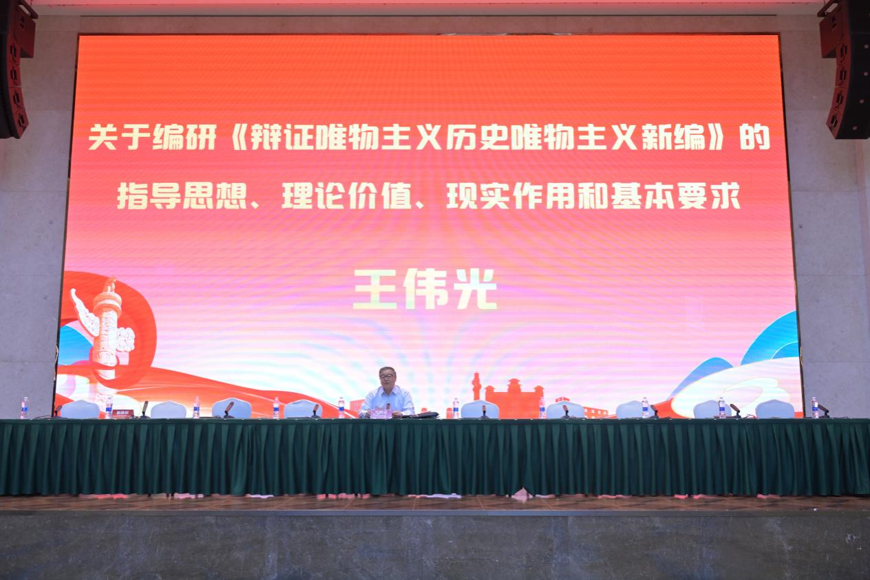开幕式结束后,王伟光作题为《关于编研<辩证唯物主义历史唯物主义新编>的指导思想、理论价值、现实作用和基本要求》的主旨报告。王伟光指出,以中国式现代化全面推进中华民族伟大复兴必须学会运用辩证唯物主义历史唯物主义的世界观和方法论。习近平总书记对以科学方法推进改革创新高度重视,习近平新时代中国特色社会主义思想正是运用辩证唯物主义历史唯物主义世界观和方法论回答解决一系列重大理论与实践问题的理论精华。新时代的哲学工作者要进一步推动辩证唯物主义历史唯物主义与当代中国实际,与中华优秀传统文化的结合,努力推出以习近平新时代中国特色社会主义思想为指导的辩证唯物主义历史唯物主义的当代创新成果,为党和人民奉献出更多更好的哲学智慧,此为中国辩证唯物主义研究会当前最重要的政治任务。