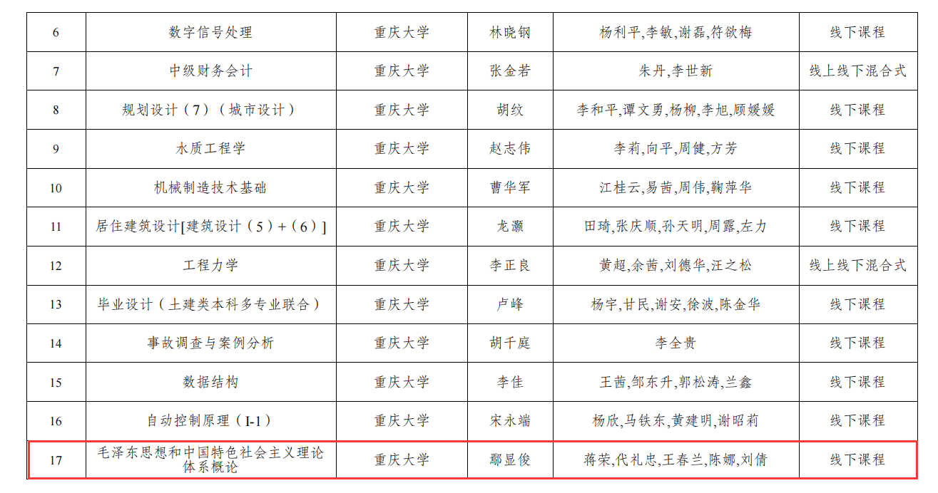 近日,重庆市教育委员会公布了2021年重庆市高校一流本科课程评审认定结果,中文无码