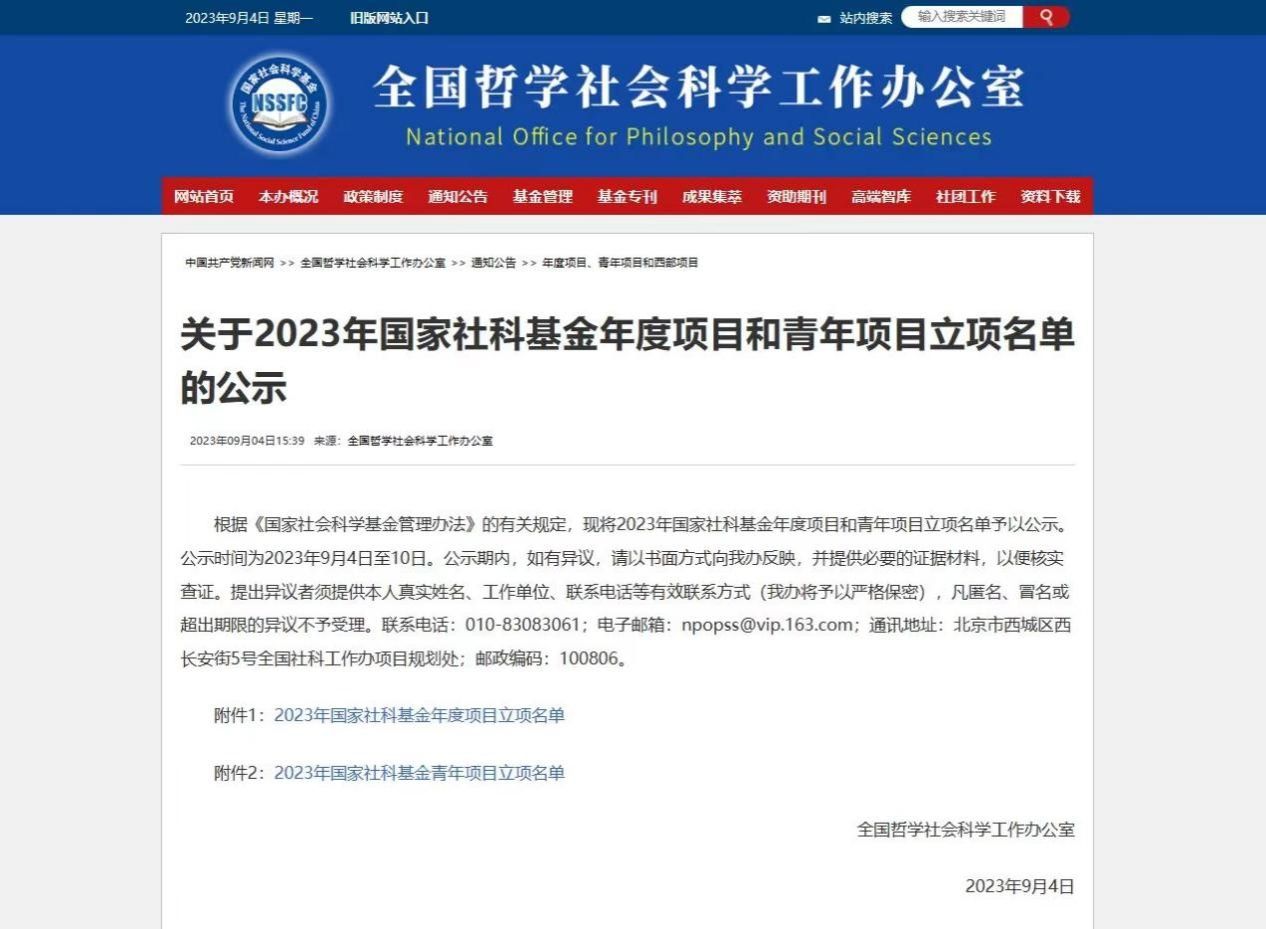 2023年9月4日,全国哲学社会科学工作办公室公示了2023年国家社科基金年度项目和青年项目立项名单。中文无码 吕进、杨长福两位老师获国家社科基金年度项目立项,王超、廖钰获国家社科基金青年项目立项。立项信息如下: