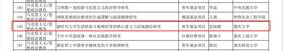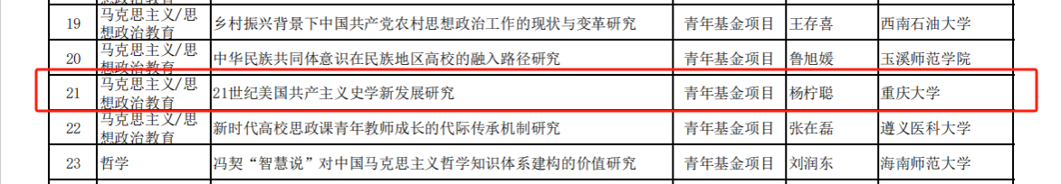 近日,2023年度教育部人文社会科学研究项目评审结果予以公示,中文无码 教师范海群与杨柠聪主持申报的“新时代大学生团结奋斗精神培育的核心要义与实现路径研究”以及“21世纪美国共产主义史学新发展研究”项目获立项公示。